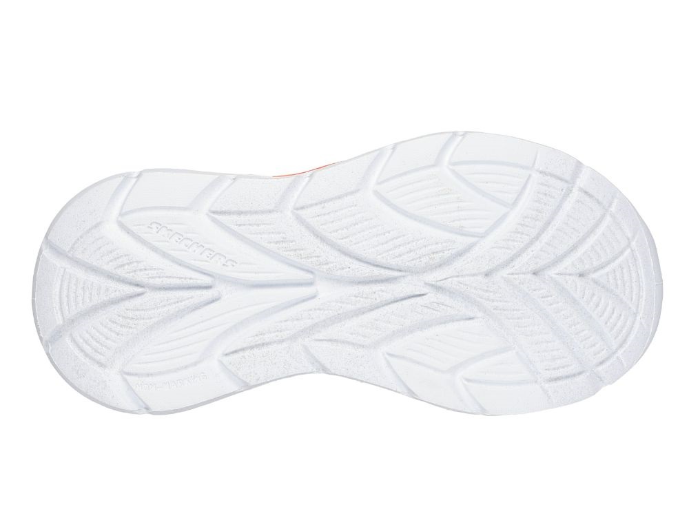 Sneakers i sort og sølv fra Skechers med blinklys i sålen. Blinklyset tændes, når skoene bevæges, og modellen har elastik over vristen samt justerbar velcrolukning for nem af- og påtagning. Skoene giver god støtte i hælkappen.