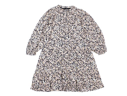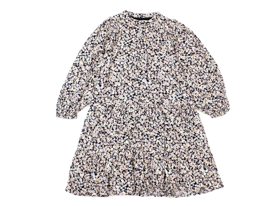 Sort kjole med blomsterprint og guld-detaljer fra Sofie Schnoor Girls. Kjolen har elastik ved ærmeslut.