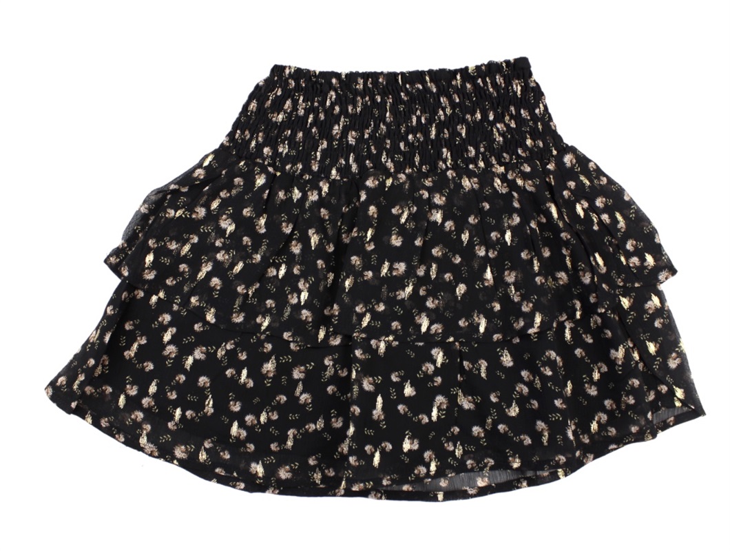 Sort nederdel med blomsterprint og guldglitter fra Sofie Schnoor Girls.