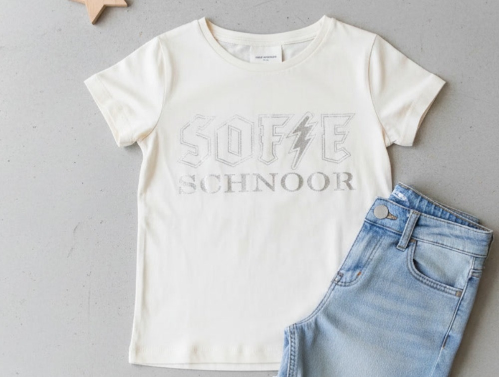 Offwhite t-shirt med sølvfarvet print fra Sofie Schnoor Girls.