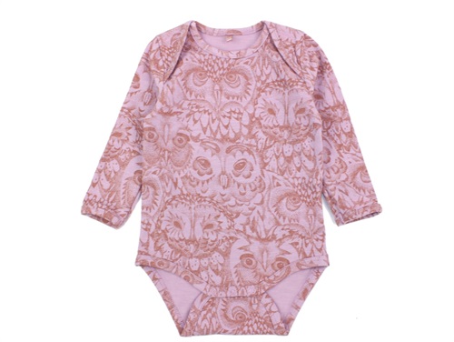 Body i farven mauve shadows med lavendelfarvet ugleprint fra Soft Gallery.