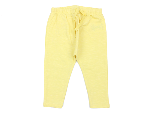Gule bukser med panda-applikation på baglommen fra Soft Gallery. Bukserne har elastik i linningen.