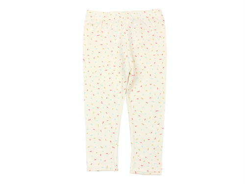 Råhvide leggings med turkis, pink og guldfarvet 'drizzle'-print fra Soft Gallery.