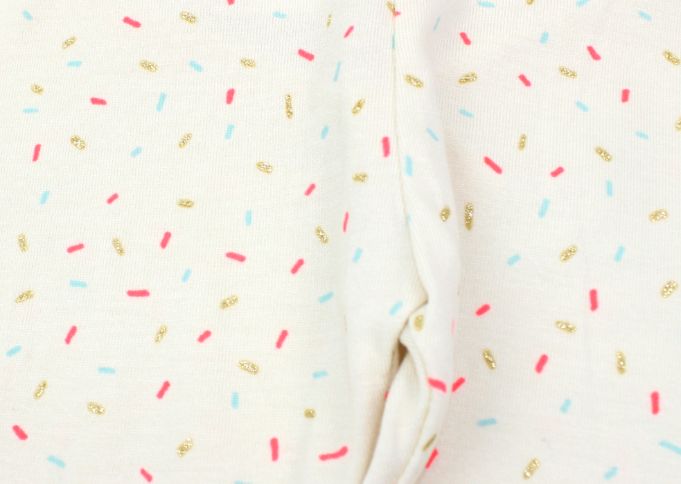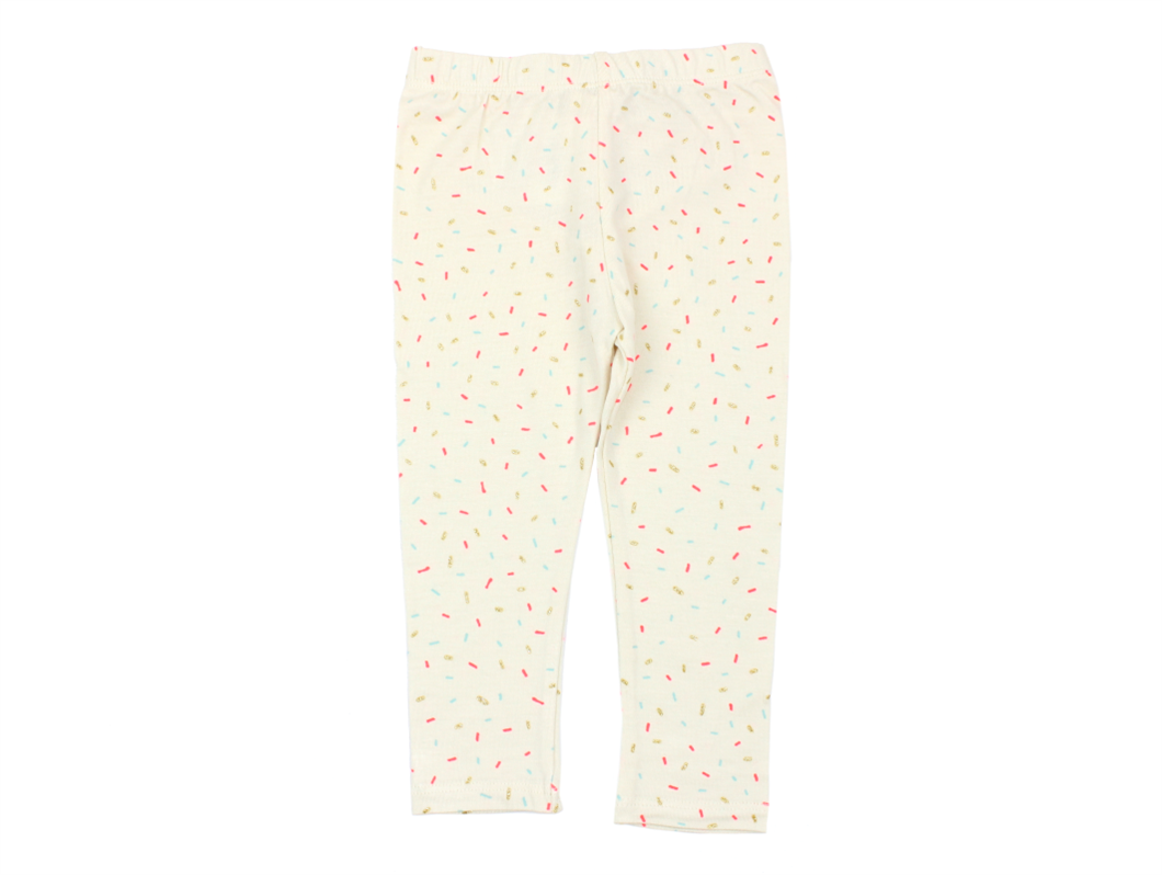 Råhvide leggings med turkis, pink og guldfarvet 'drizzle'-print fra Soft Gallery.