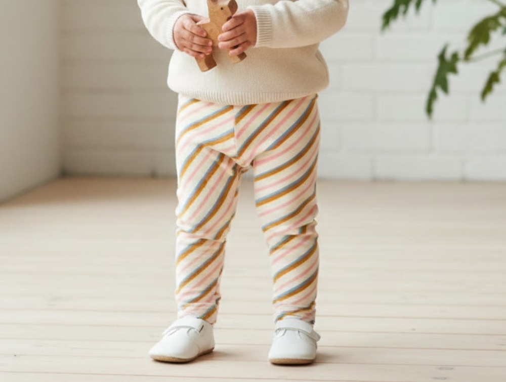 Leggings i farven gardenia med skrå striber fra Soft Gallery.