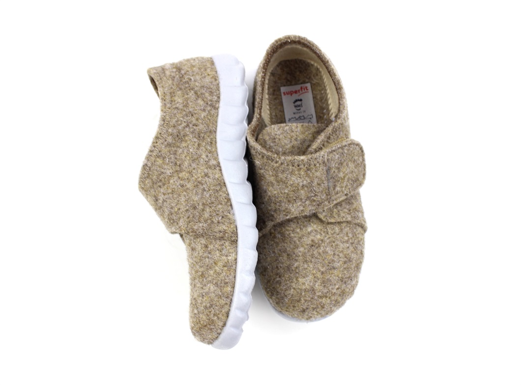 Ensfarvede enkle beige hjemmesko i uldfilt fra Superfit.