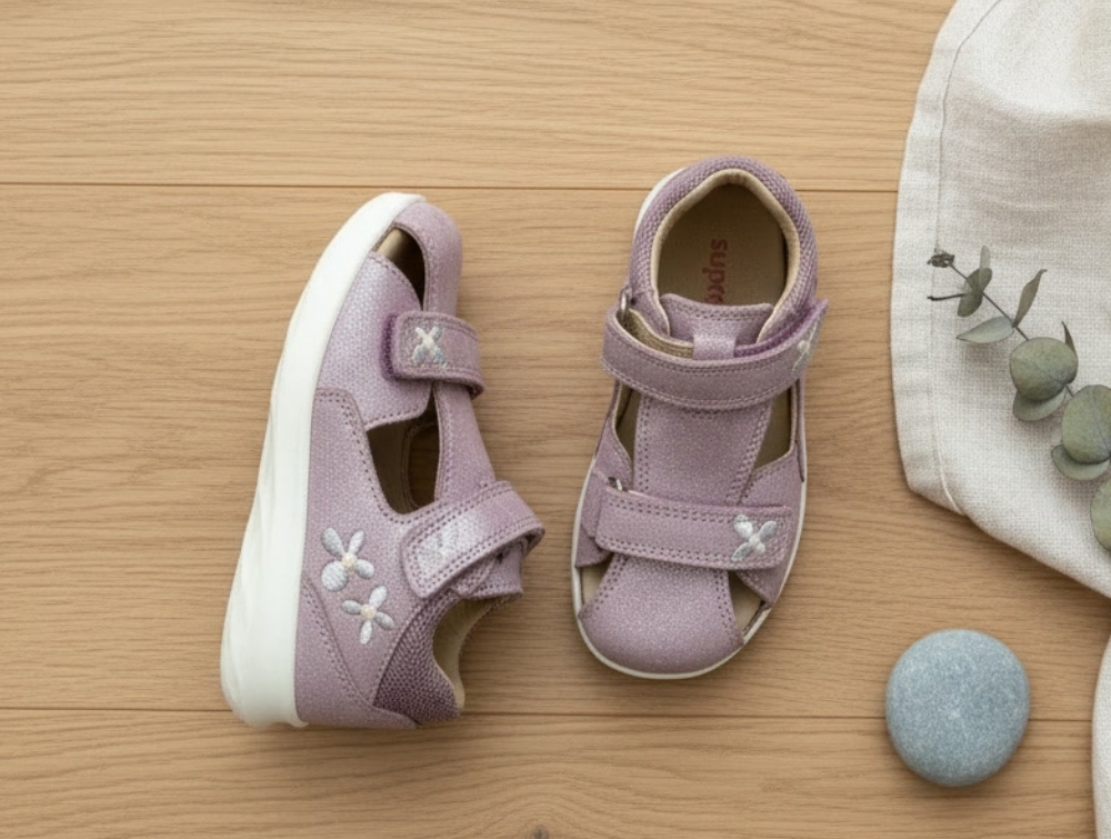 Lilla glimmersandal i ruskind fra Superfit.