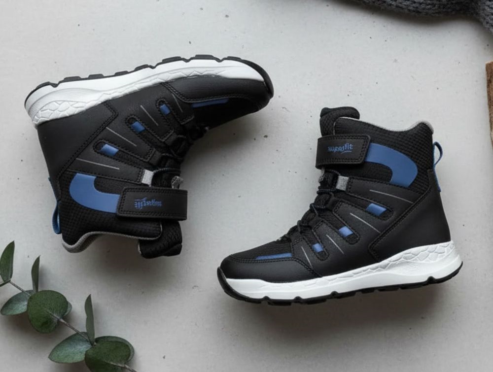 Sort vinterstøvle med blå og grå deltajer fra Superfit.
