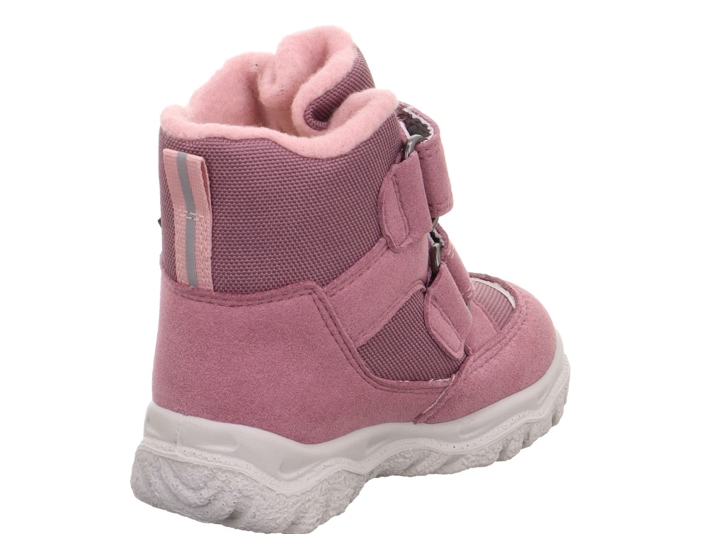 Vinterstøvle i lilla og rosa fra Superfit. Modellen Husky1 er en funktionel støvle, der holder børns fødder varme og tørre gennem vinteren. Den lukkes med to velcroremme, som gør den nem at tage af og på, og støvlen har en lav vægt, der gør den behagelig for børn at bevæge sig i.