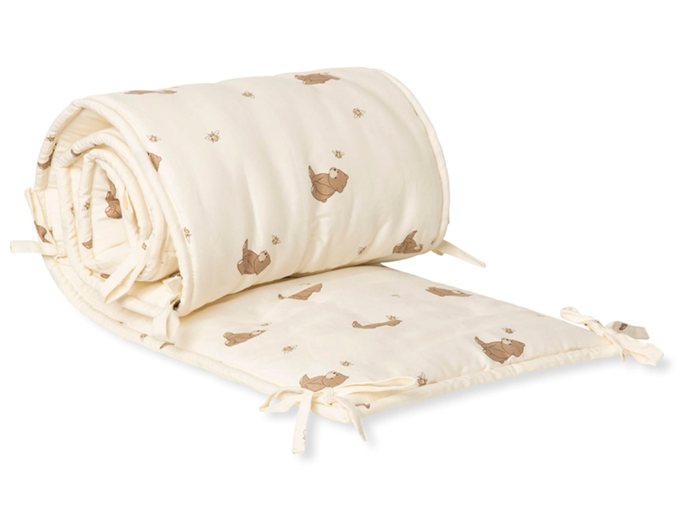 Med snorene kan du selv vælge, hvor sengeranden skal bindes fast, både øverst og nederst, så den passer perfekt til lige netop din babyseng. Lavet af 100% økologisk bomuld og fyld af genanvendt polyester, beskytter denne sengerand dit barn mod stød mod sengen.