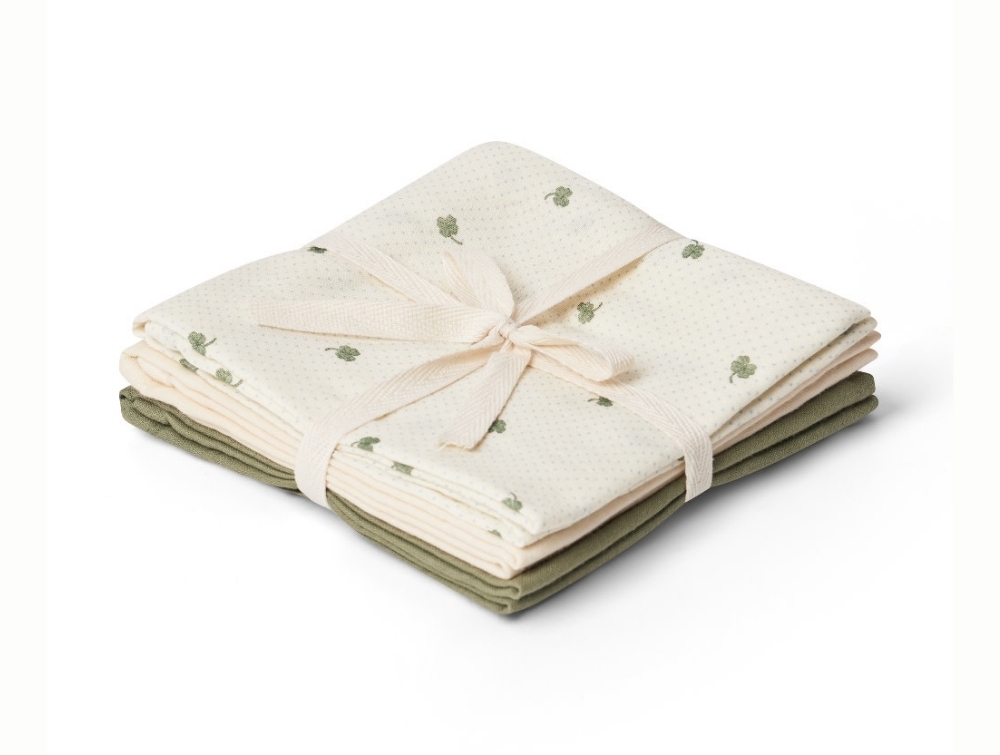 That's Mine Bora stofbleer 3-pak med firkløver-print i økologisk bomuldsmuslin