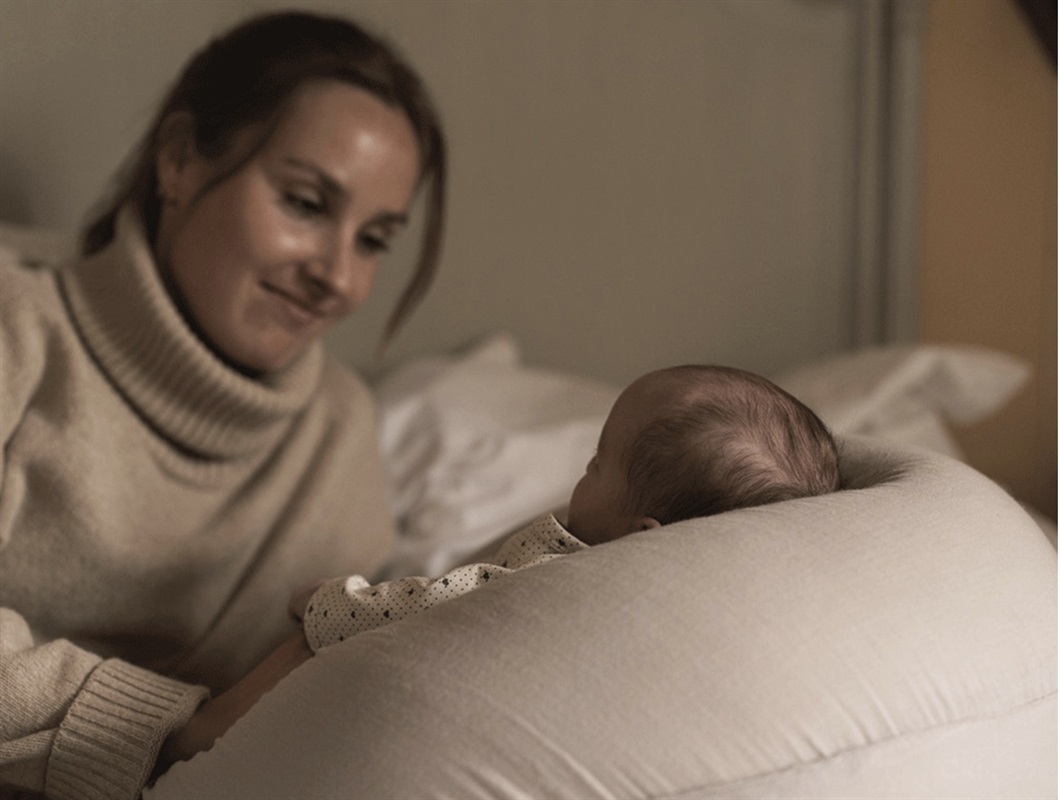 Ammepude i feather grey fra That's Mine. En multifunktionel pude, der støtter både mor og baby under amning eller flaske – og kan bruges længe efter.