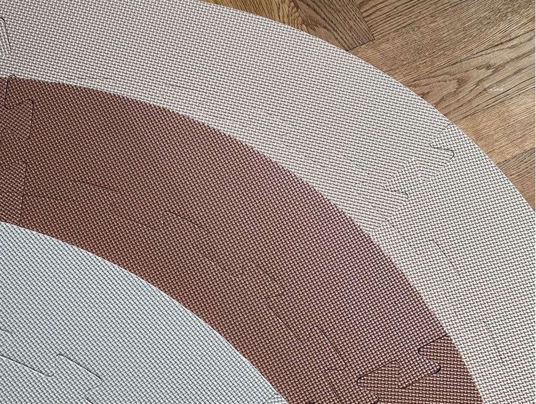 Skumlegegulv i cirkelform i light grey sand fra That's Mine.