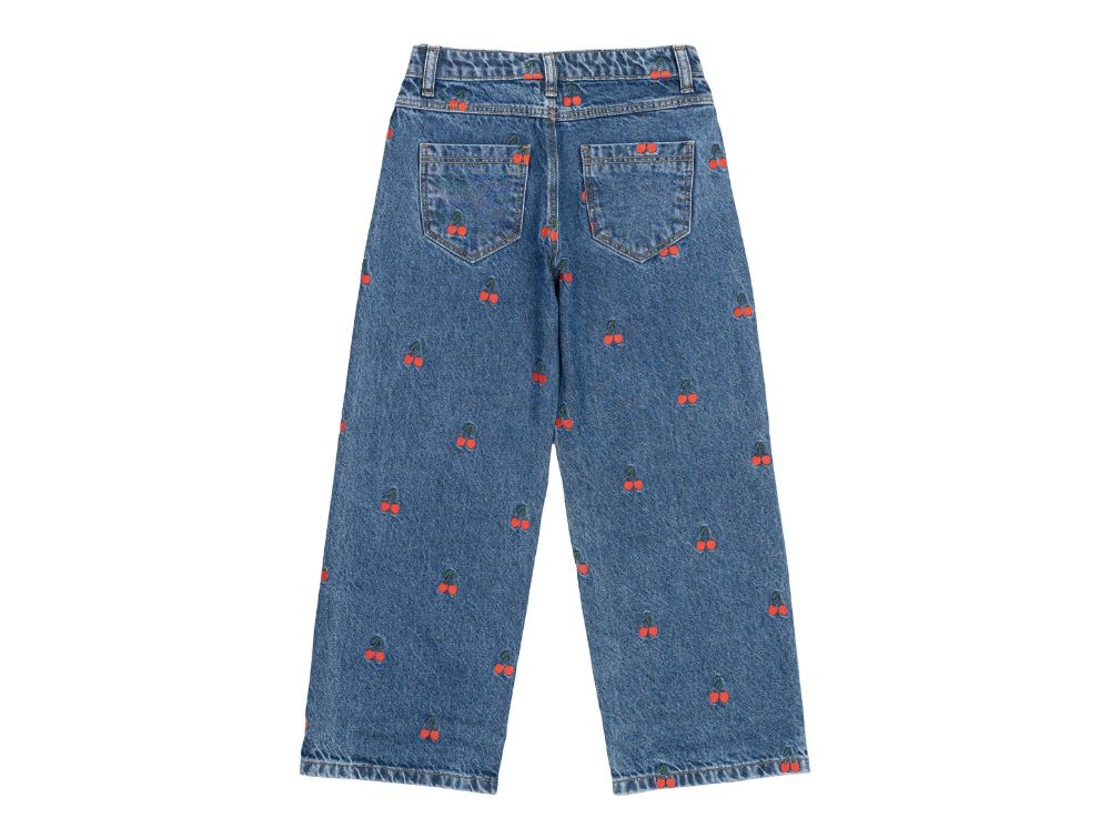 De cool jeans har en afslappet, bred pasform og fine kirsebærbroderier, der tilføjer et sødt touch. Den gode denimkvalitet gør dem både komfortable og nemme at style til hverdagens outfits.