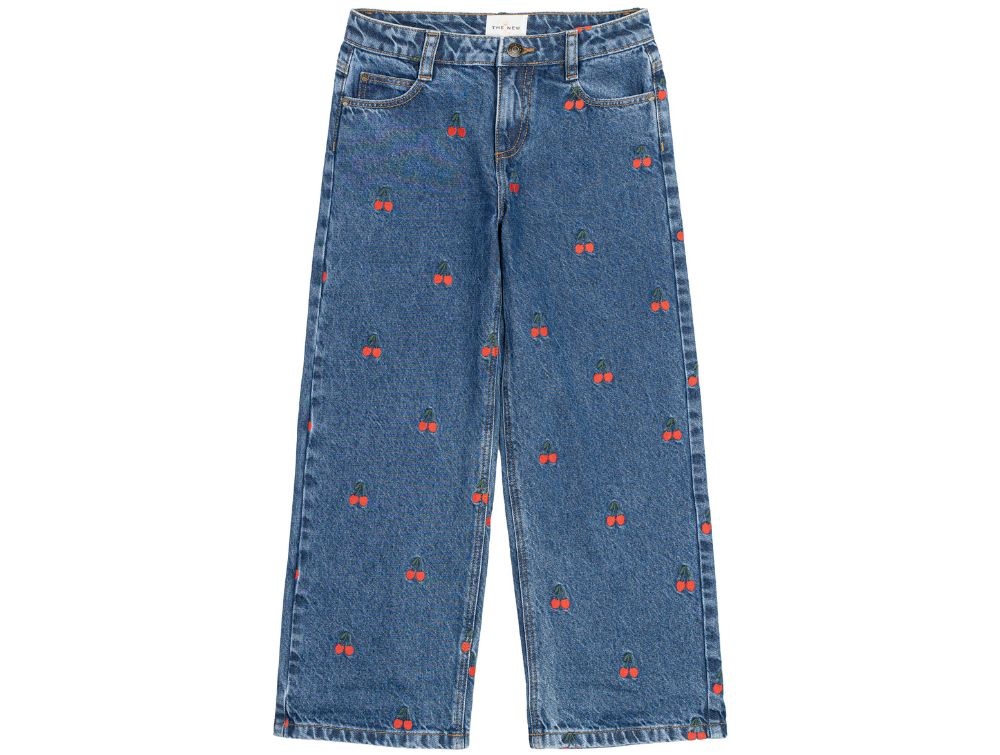 Mere information om THE NEW Natalia brede jeans medium blue denim med kirsebær