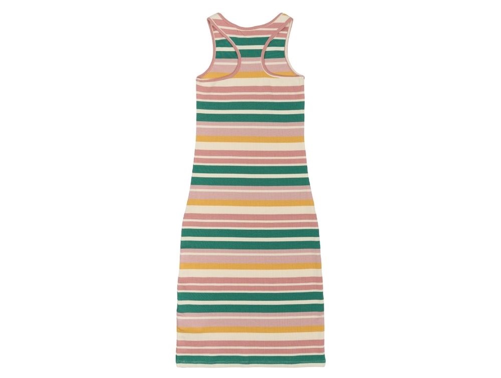 Multifarvet stribet kjole uden ærmer fra The New TN6295 multi stripedMultifarvet stribet kjole uden ærmer fra The New TN6295 multi striped bagfraPige klædt i multistribet kjole uden ærmer fra The New TN6295 multi striped