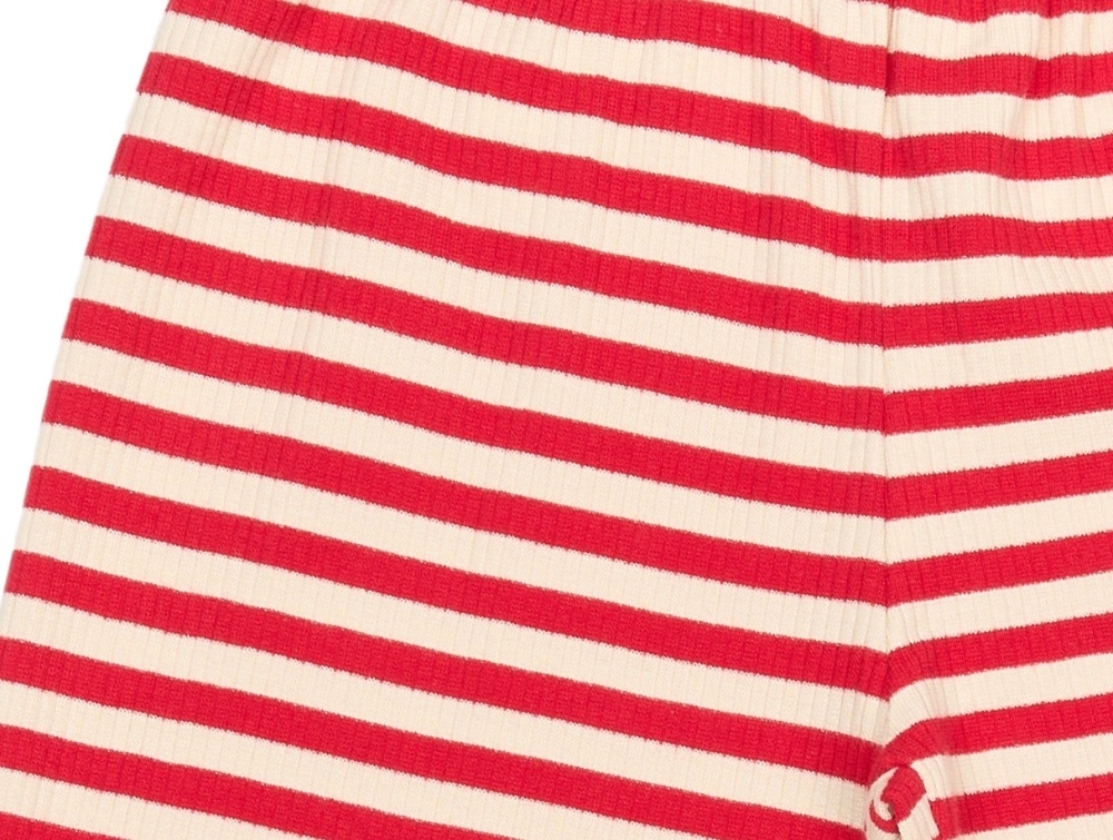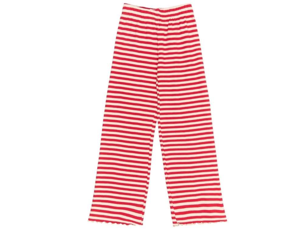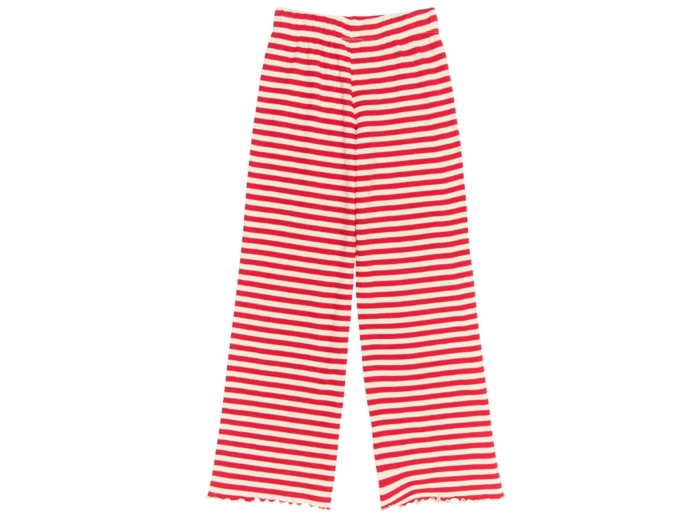 Ribbukser i røde og hvide striber fra THE NEW. De har brede ben og elastik i taljen, som gør dem behagelige at have på. Den ribbede kvalitet giver et fint udtryk, og bukserne kan nemt styles både afslappet og pænt.