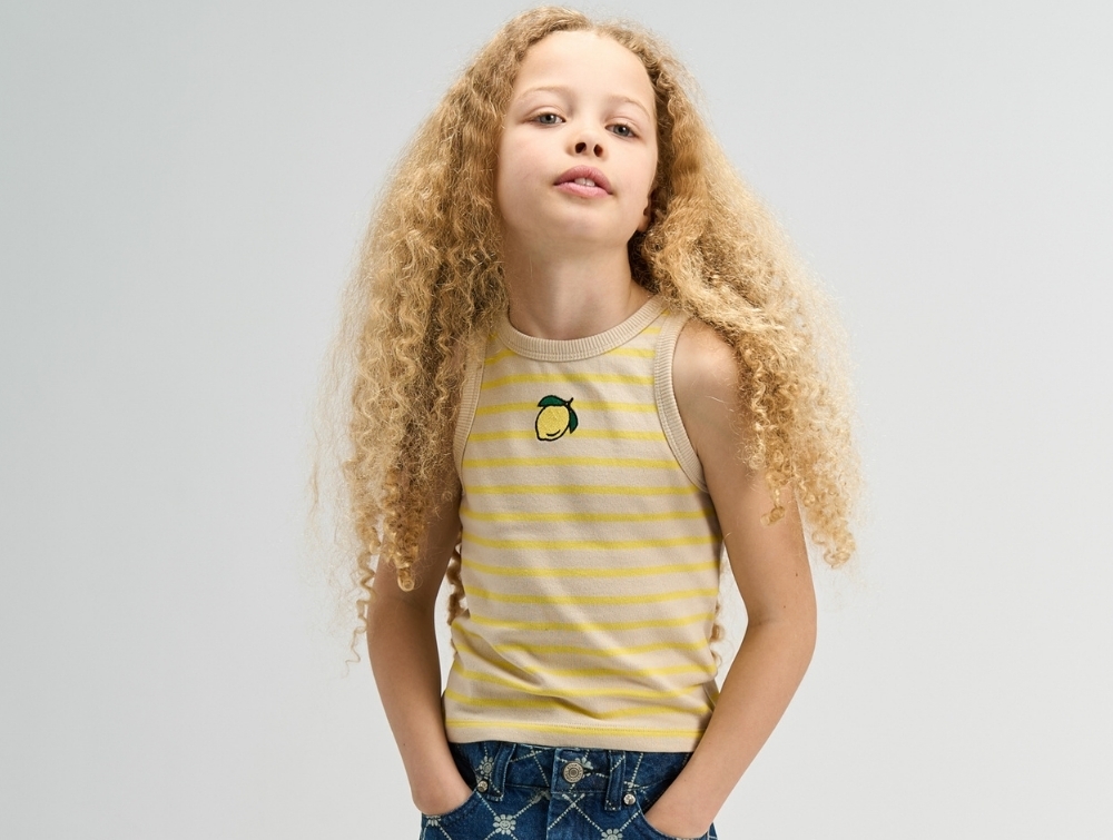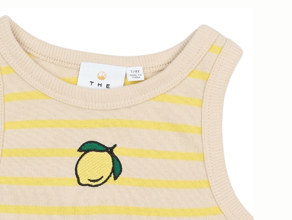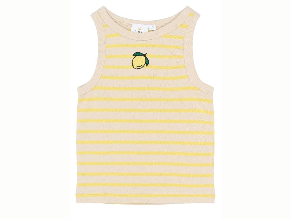 THE NEW tanktop i stribet bomuld med citronbroderi