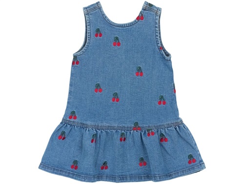Denimkjole i farven light blue denim med kirsebærbroderier fra THE NEW Siblings.
