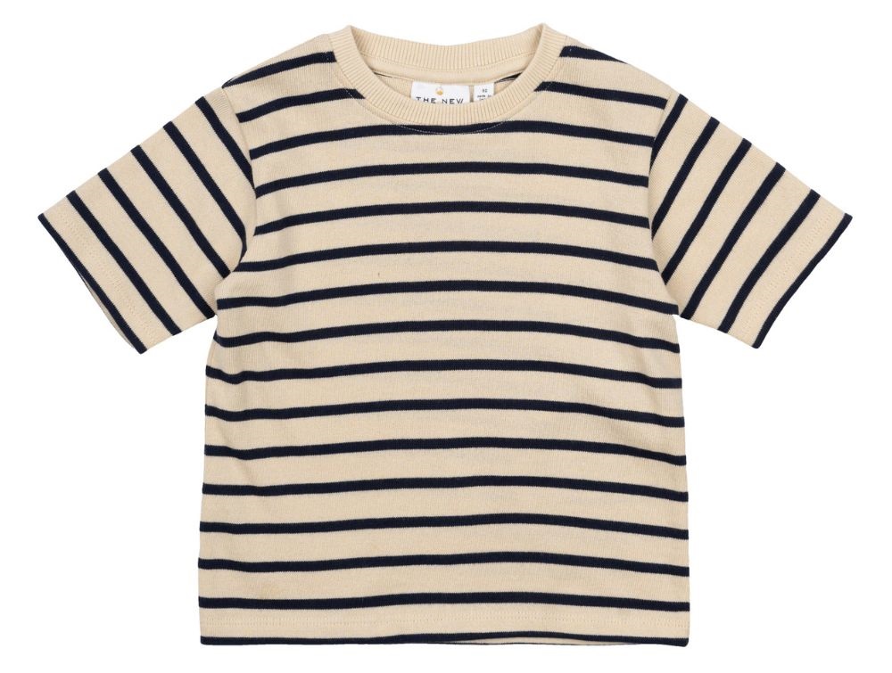 Stribet Nat t-shirt i råhvid med mørkeblå (mood indigo) striber fra THE NEW Siblings.