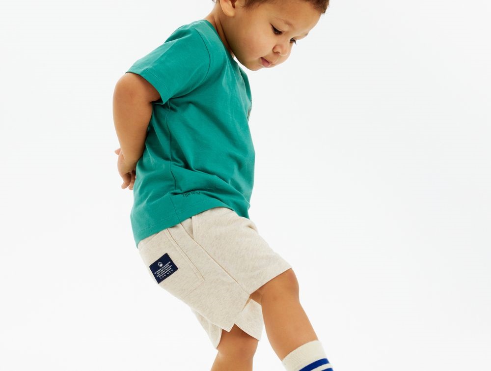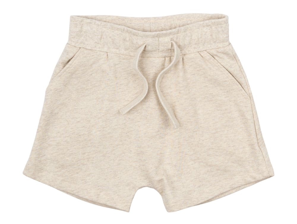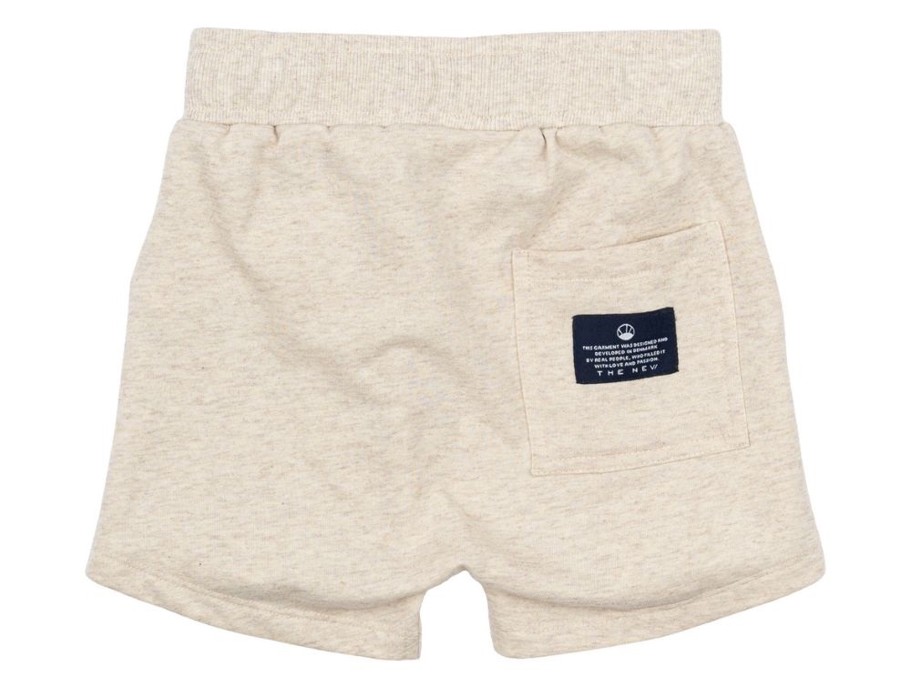 Dreng med beige meleret shorts fra THE NEW Siblings Norval TNST6035THE NEW Siblings sweat shorts i Oatmeal melange med bindebåndTHE NEW Siblings sweat shorts i Oatmeal melange med baglommeDreng med beige meleret shorts fra THE NEW Siblings Norval TNST6035 og grøn T-shirt TNST6027