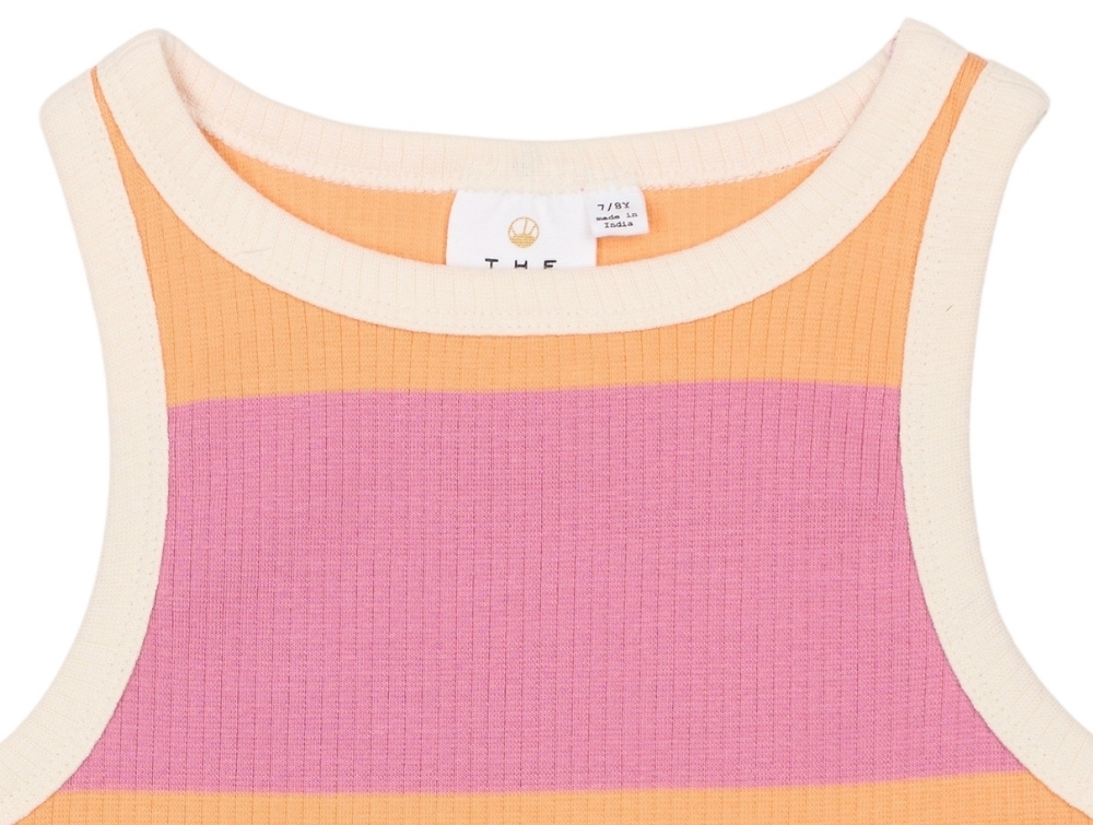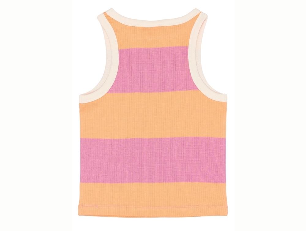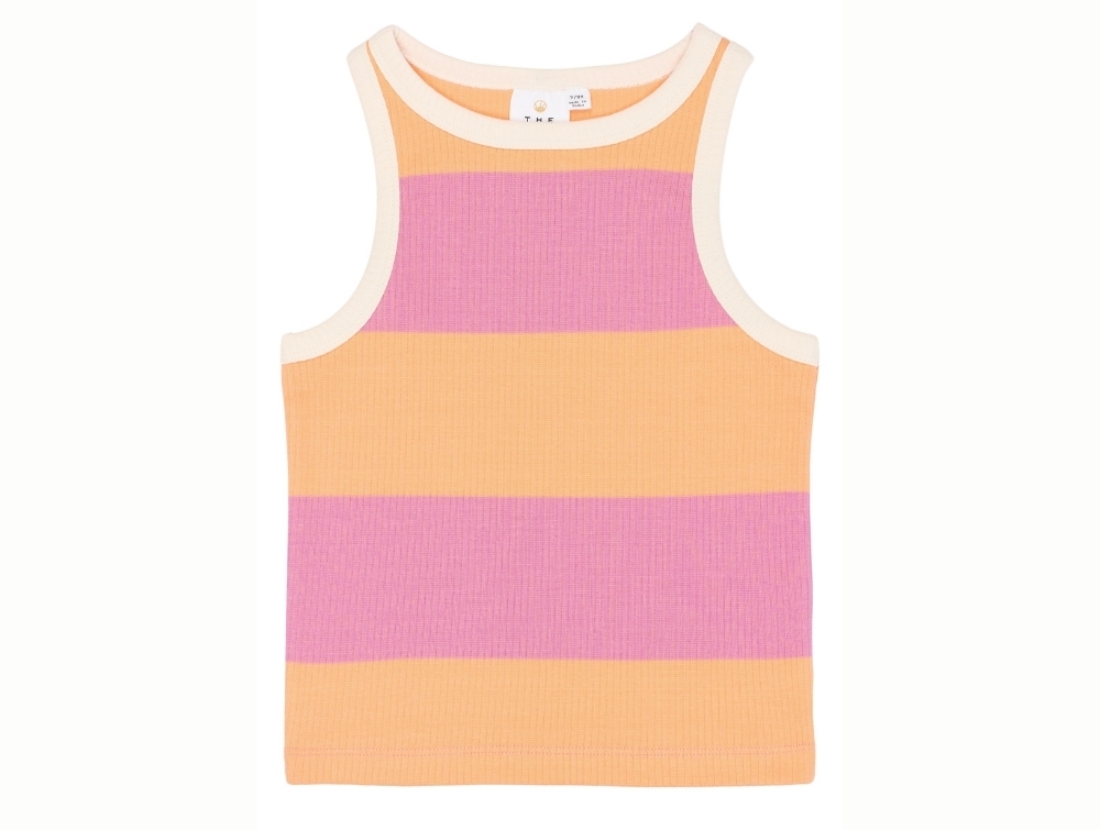 Rib top fra THE NEW med brede rosa (cashmere rose) og orange striber samt kontrastkant i råhvid nuance.