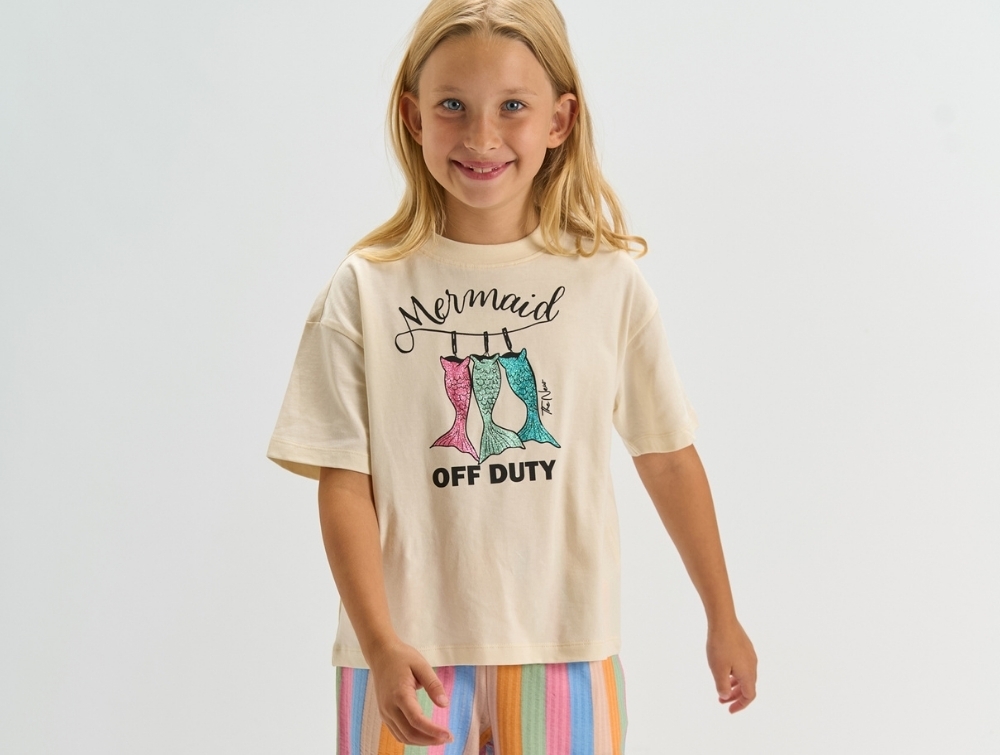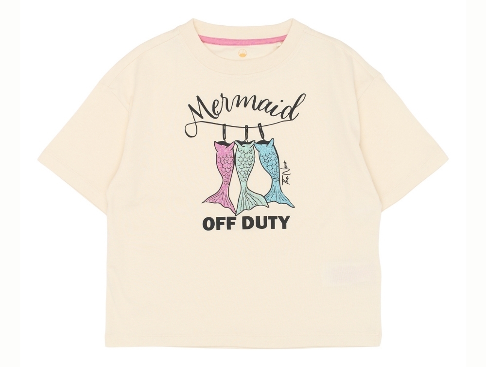 THE NEW Tia oversized t-shirt gardenia med mermaid print vist på barnTHE NEW Tia oversized t-shirt gardenia mermaid print forfraTHE NEW Tia oversized t-shirt gardenia tæt på frontprintTHE NEW Tia oversized t-shirt gardenia set bagfra