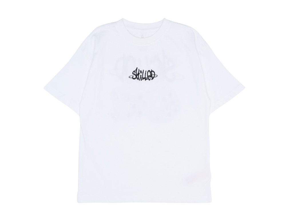 T-shirt i hvid fra THE NEW med oversized pasform. Foran er der et broderet “Skilled”-logo på brystet, og på bagsiden et markant print med terninger og stort grafisk “Skilled”-motiv. Fremstillet i blød bomuld med GOTS-certificering.