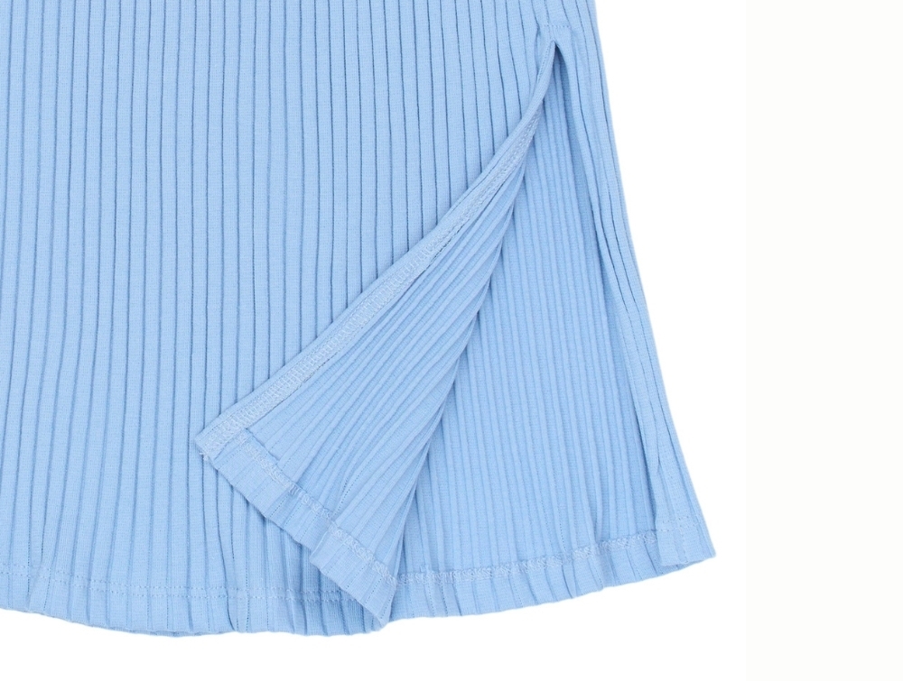 THE NEW ankel-lang rib nederdel i blå nuance med slidser