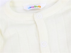 • Uld/silke: Også kaldet sommeruld. Kombinationen gør tøjet ekstra blødt og let, og det er derfor godt hele året – især til babyer med sart hud eller tendens til eksem. Uld/silke kan dog være for tyndt til de koldeste vinterdage, medmindre du bruger det i flere lag.