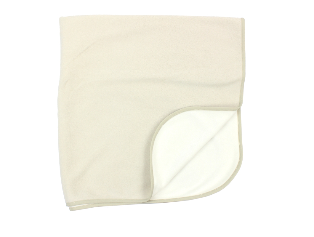 To-farvet fleece tæppe i farverne kit (sandfarvet) og vanilla (off-white) fra Ver de Terre.