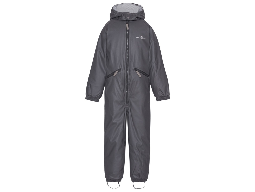 Gummiflyverdragt i mørkegrå nuance fra VER de TERRE med Thermolite isolering og aftagelig hætte.