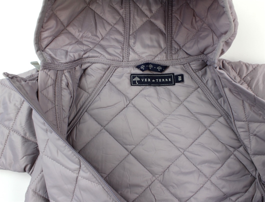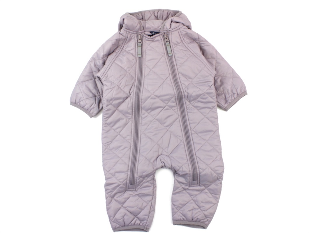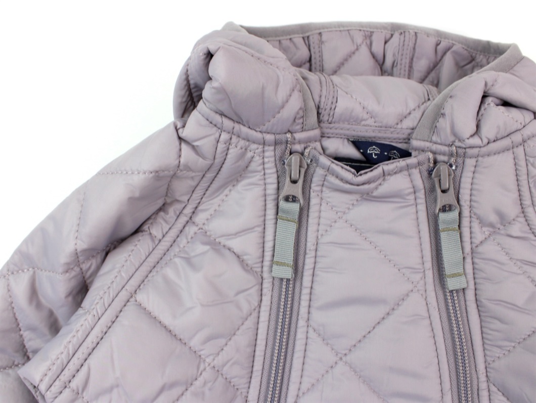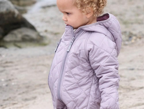 Termodragt i farven heather fra Ver de Terre. Dragten lukkes med to lynlåse og har en ikke-aftagelig hætte.