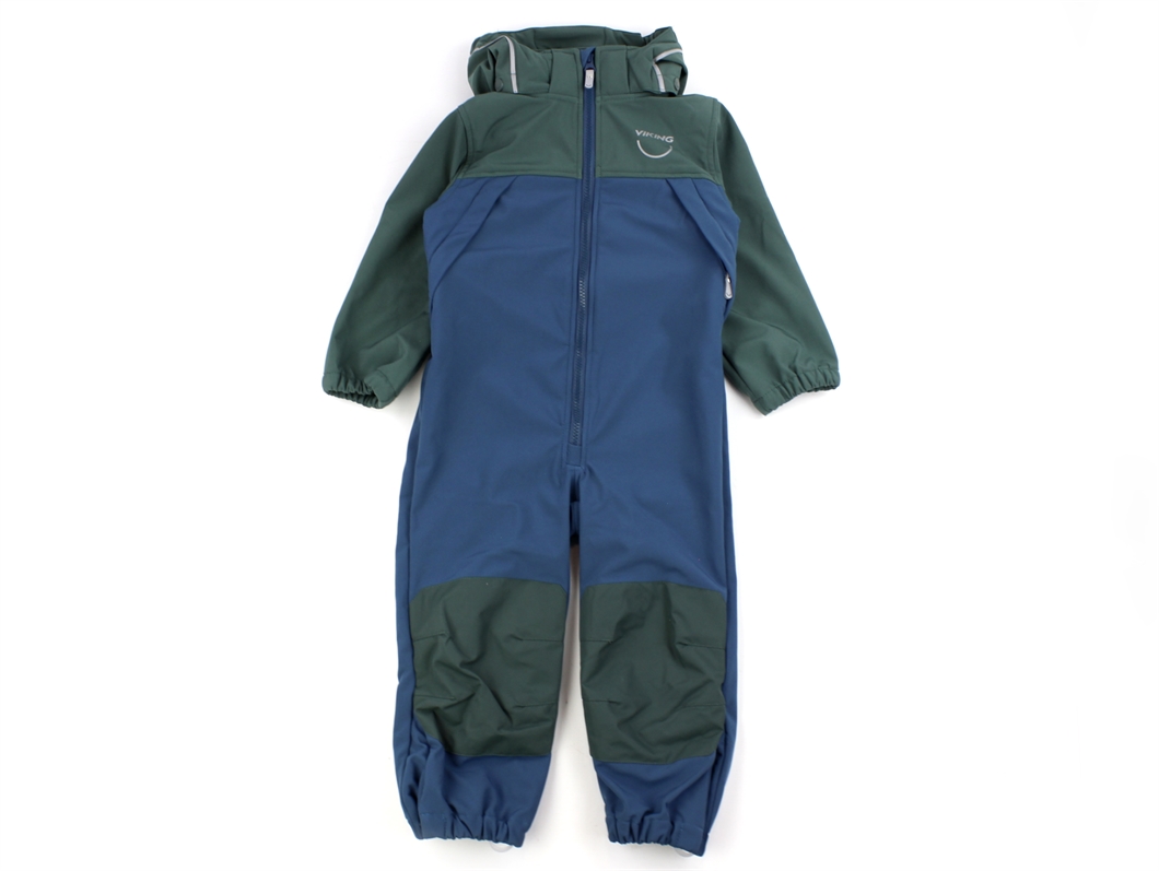 Softshell heldragt i grøn og blå fra Viking. Dragten har en aftagelige hætte med trykknapper.