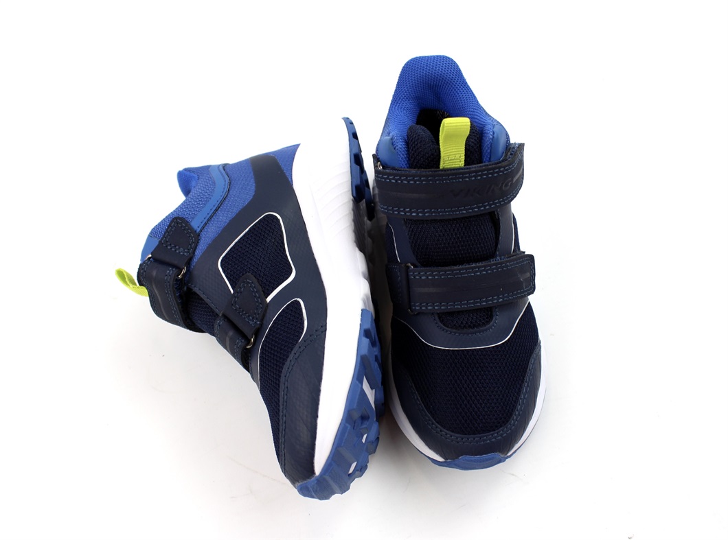 Lette mid cut støvler i farverne navy/ocean med lime-farvet strop og reflekterende detaljer fra Viking.
