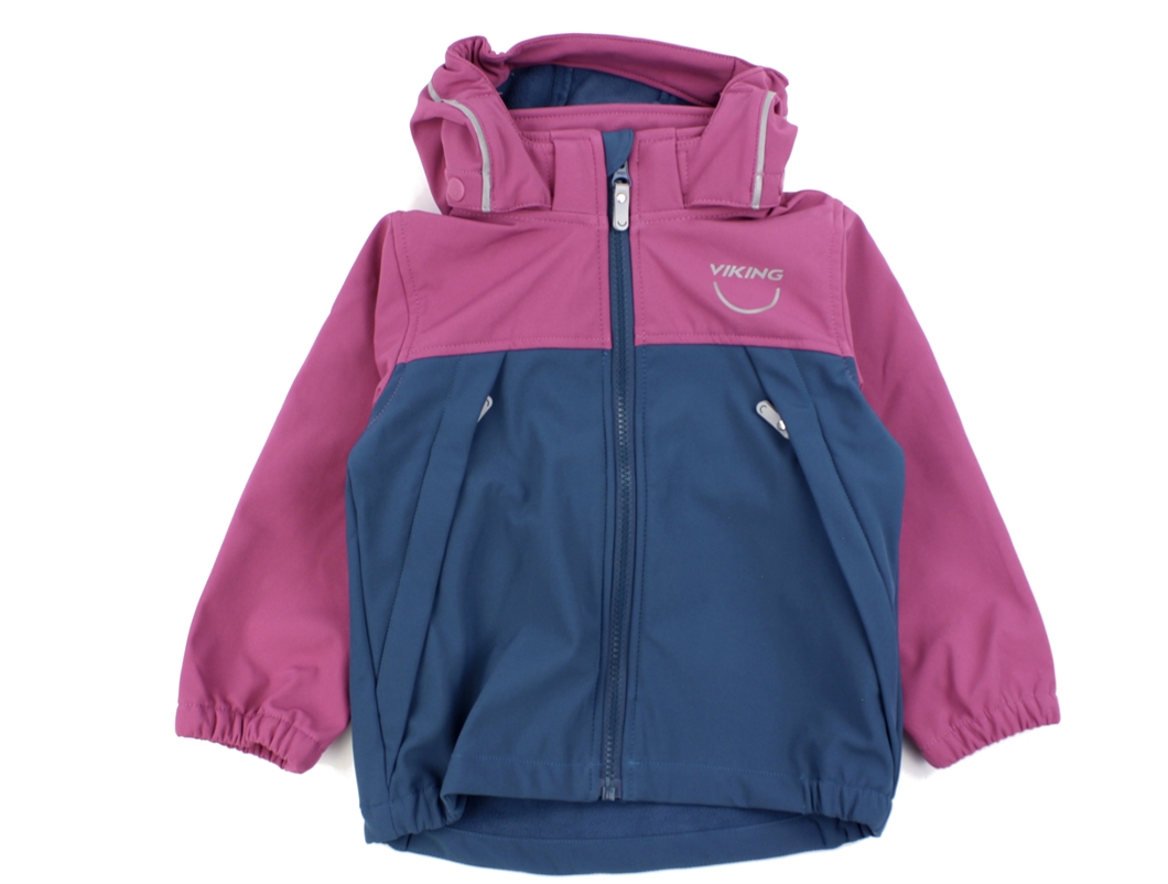 Softshell jakke i farven plum fra Viking. Jakken har en aftagelige hætte med trykknapper.