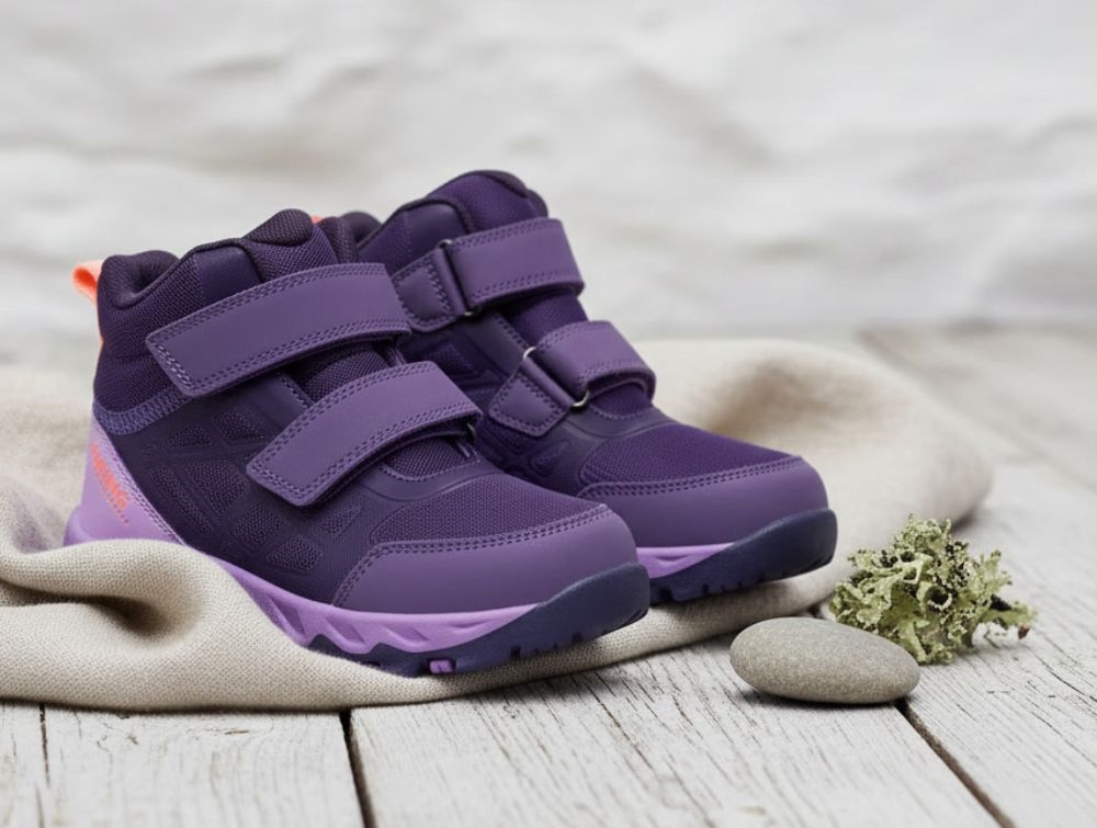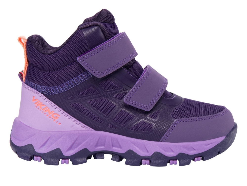 Viking Track Mid WP er en praktisk overgangsstøvle til børn i aubergine/lilac med orange detalje. Støvlen er designet til at give ekstra støtte og stabilitet i forår og efterår, hvor vejret ofte er vådt og underlaget ujævnt. Den robuste overdel i tekstil og syntetisk materiale kombineres med en vandafvisende TEX-membran (Watershield), som holder fødderne tørre. Med dobbelt velcrolukning, kraftig ydersål og ekstra tåforstærkning er Track Mid WP en oplagt støvle til aktive børn.