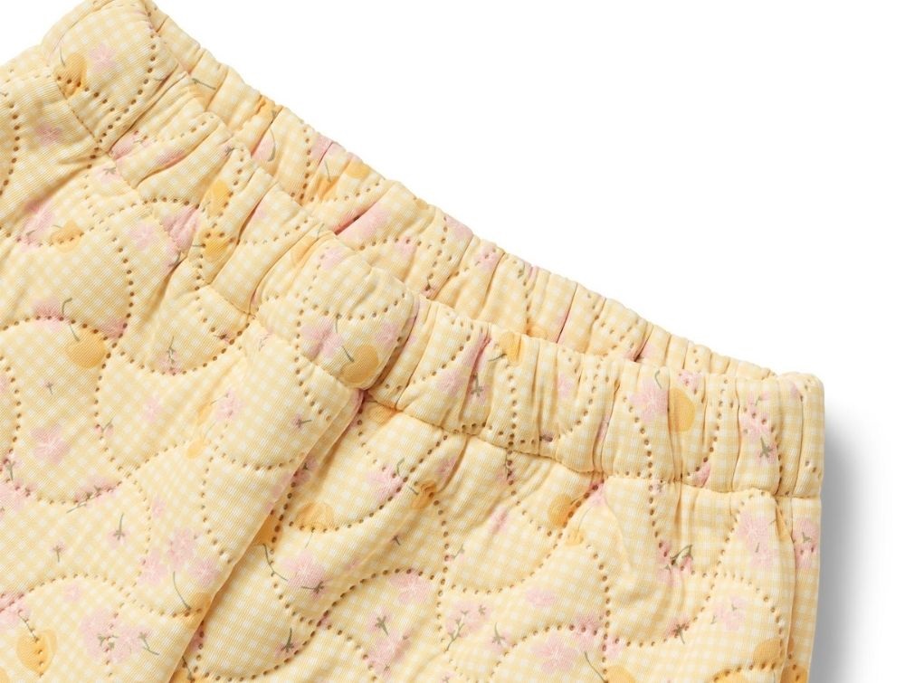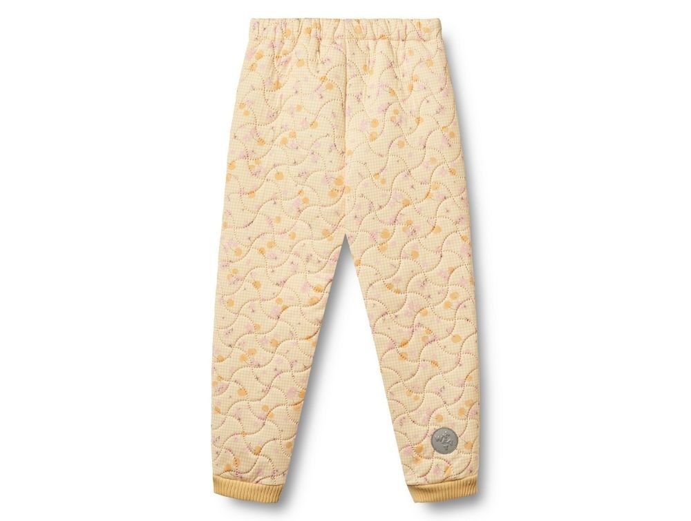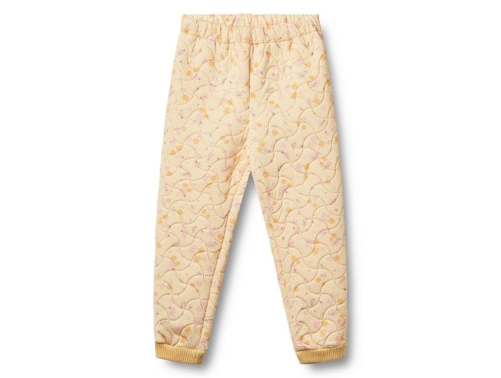 Søde og praktiske termobukser fra Wheat i en varm gul nuance med et fint kirsebærprint. Bukserne er fremstillet af 100% polyester (genanvendt) og har en let og fleksibel kvalitet, der giver god bevægelsesfrihed.