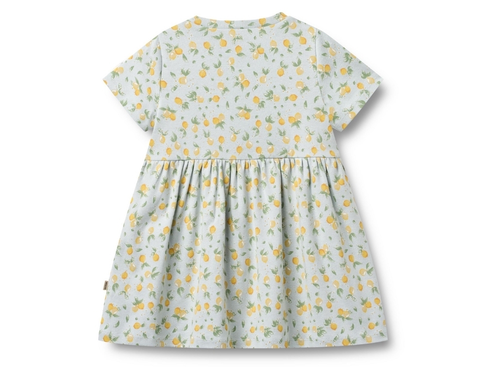 Wheat Anna kjole i summer blue med citronprint forfraWheat Anna kjole i summer blue med citronprint detaljeWheat Anna kjole i summer blue med citronprint set bagfra