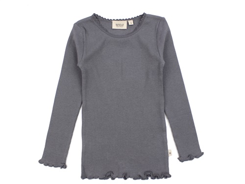 Klassisk wheat t-shirt i rib i farven autumn sky med blondekant.