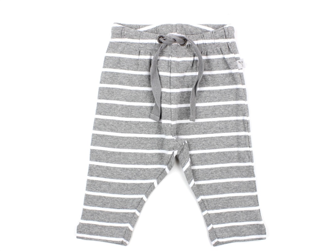 Grå bukser med hvide striber og elastik i linningen fra Wheat.