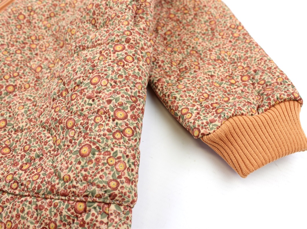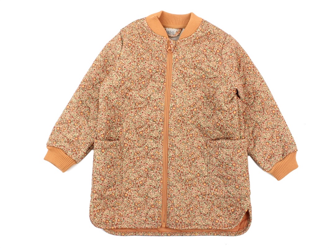 Lang termojakke med blomsterprint fra Wheat. Jakken har to lommer og ribkant på ærmerne.