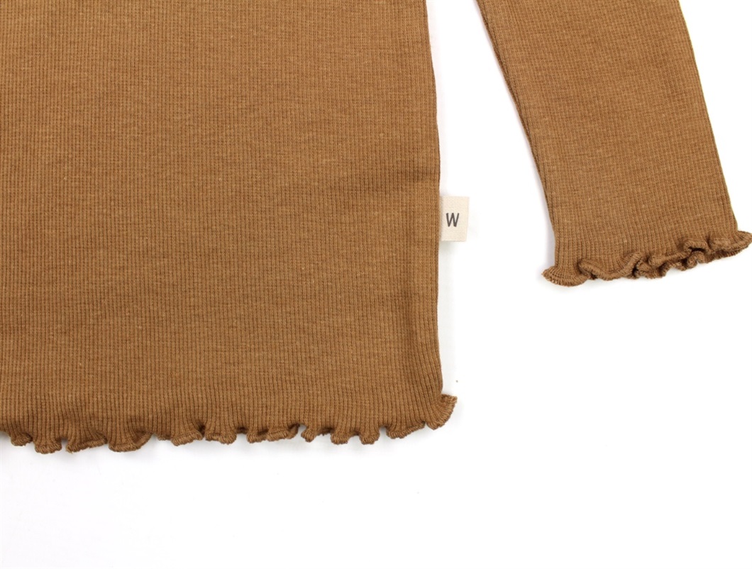 T-shirt i rib i farven caramel med blondekant fra Wheat.