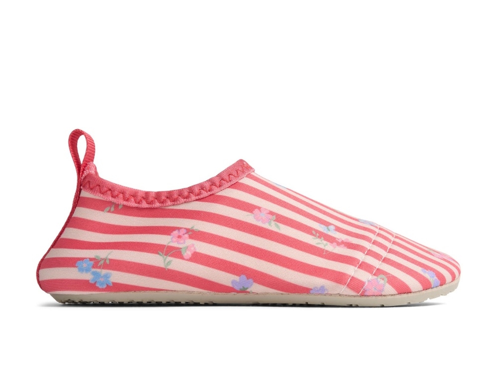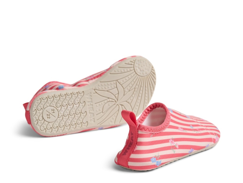 Wheat Dolphin badesko røde striber, blomster og fleksibel sål