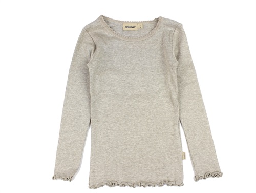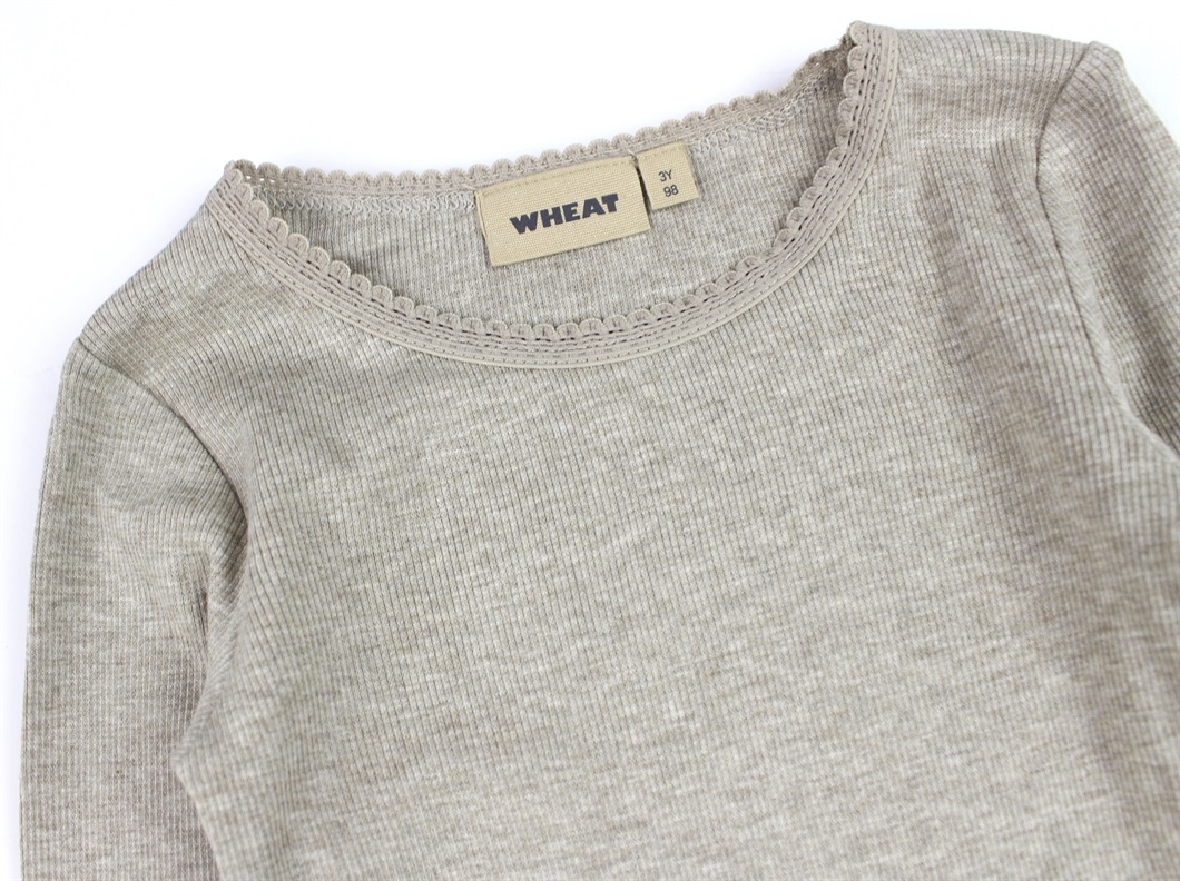 Klassisk wheat t-shirt i rib i farven gravel melange med blondekant.