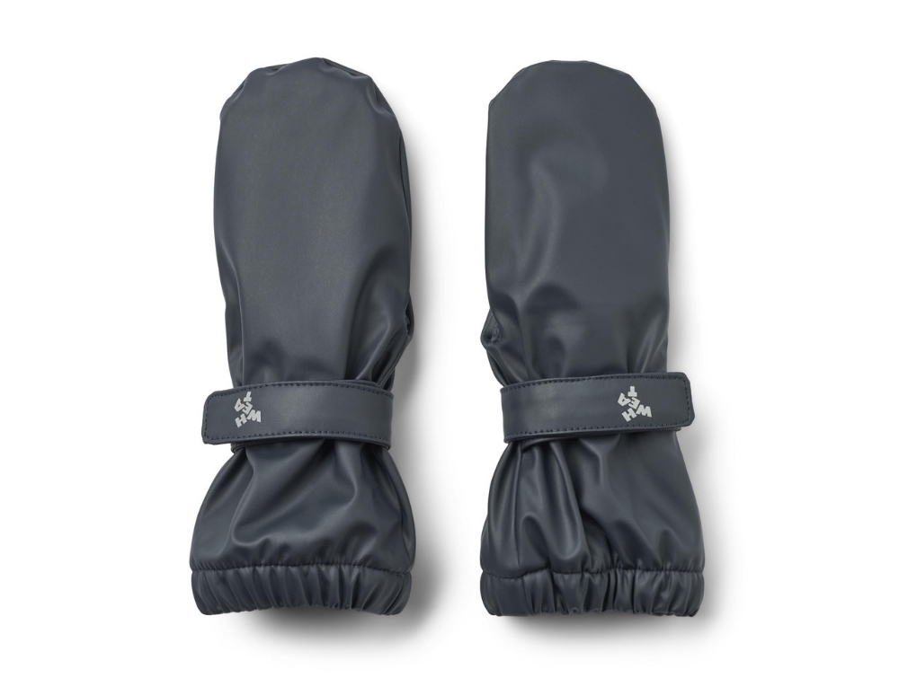 Wheat regnvanter i mørk blå med velcro og fleecefor