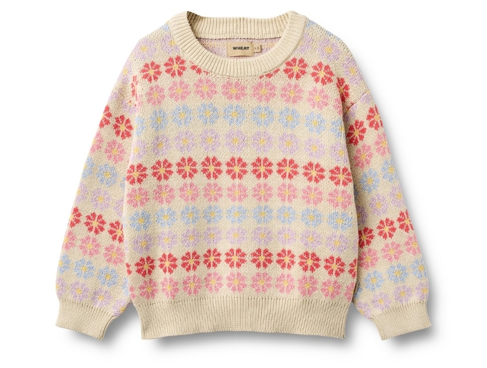 Mere information om Wheat Harlow striktrøje sandshell flowers i bomuld