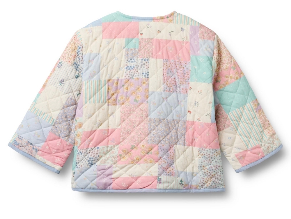 Quiltet jakke med blomstret patchworkprint (patchwork flowers) i sarte pastelfarver fra Wheat.
