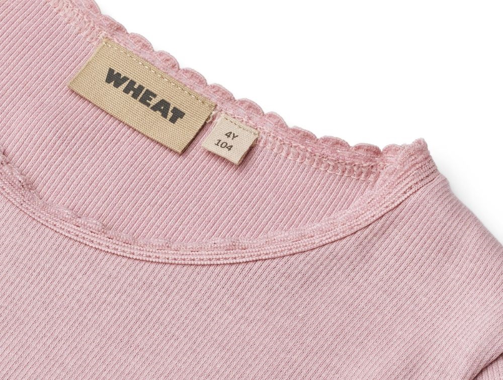 Top i rib i lavendel (lavender mist) med blondekant fra Wheat.