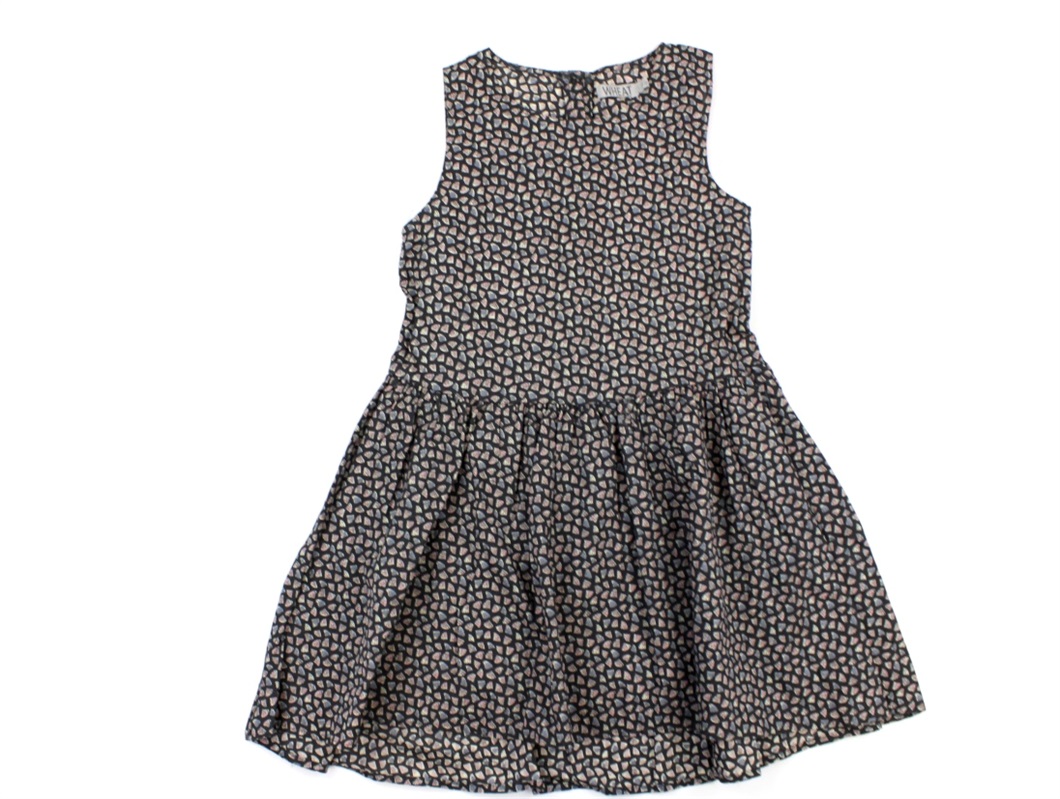 Ærmeløs kjole i farven blue ink med print fra Wheat. Knappelukning i ryggen.